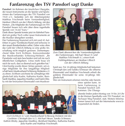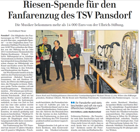 Offizieller Artikel aus den Lübecker Nachrichten vom 24.03.2015